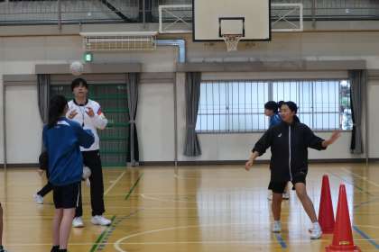 昨年末の大会で見つけた課題を克服するため、ポジションごとに分かれて基本技能をレベルアップさせるためのメニューに取り組んでいました。