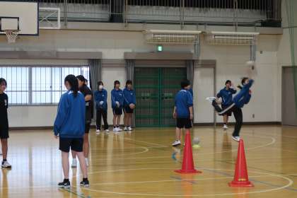 昨年末の大会で見つけた課題を克服するため、ポジションごとに分かれて基本技能をレベルアップさせるためのメニューに取り組んでいました。