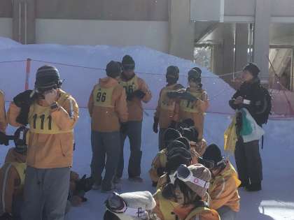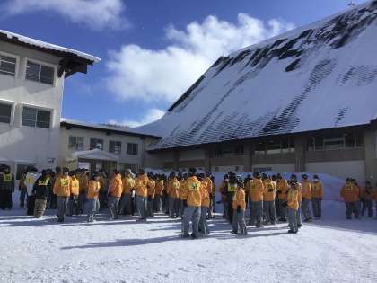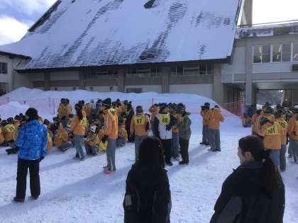 入所式を終え、すぐにスキー研修の準備(ブーツ・板合わせ)に移りました。