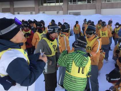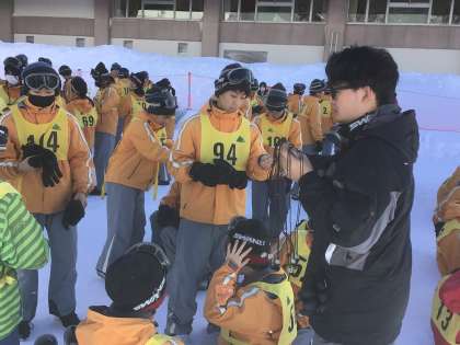 入所式を終え、すぐにスキー研修の準備(ブーツ・板合わせ)に移りました。
