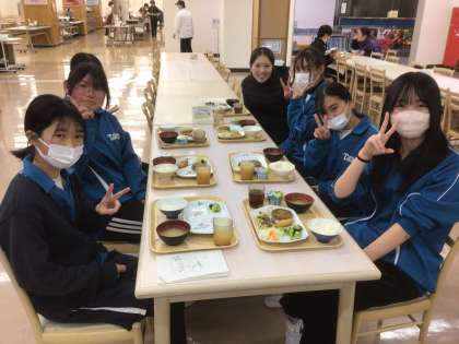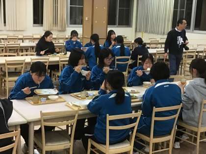 汗をかくほど頑張った初回のスキー研修を終え、楽しみにしていたこの時間。疲れを感じさせない笑顔が印象的でした。