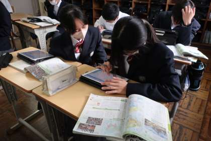 「これから急成長する地域を予想しよう」をテーマに学習が進められていました。それぞれの地域の特徴を調べ上げ、自分なりの考えをまとめていました。