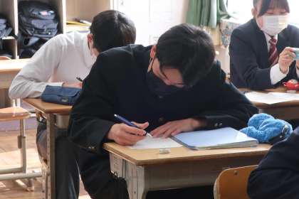 円錐と三平方の定理に関わる難問に挑戦していました。仲間と相談しながら必死に問題に向かっている姿が印象的でした。