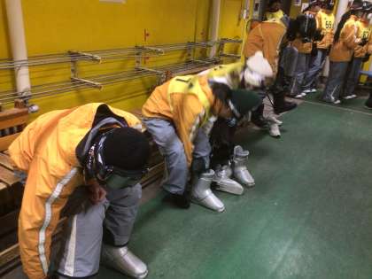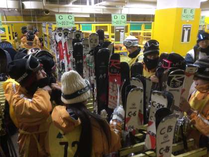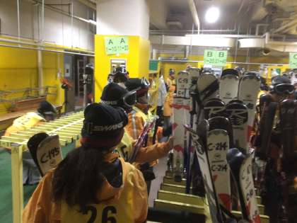 前日よりも手際よく、ブーツやスキー板の準備をしていました。