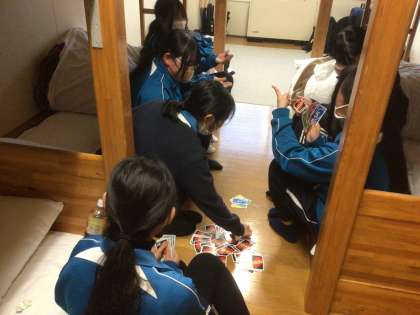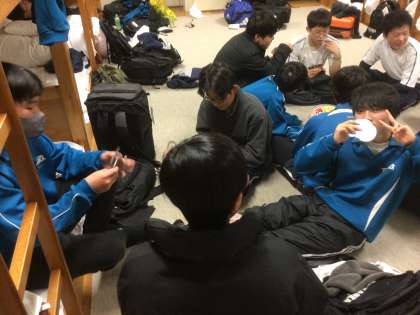 スキー研修の全日程を終え、夕食までの時間を部屋で過ごしています。