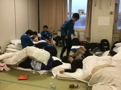 スキー研修の全日程を終え、夕食までの時間を部屋で過ごしています。