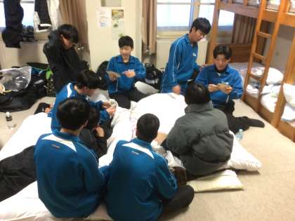 スキー研修の全日程を終え、夕食までの時間を部屋で過ごしています。