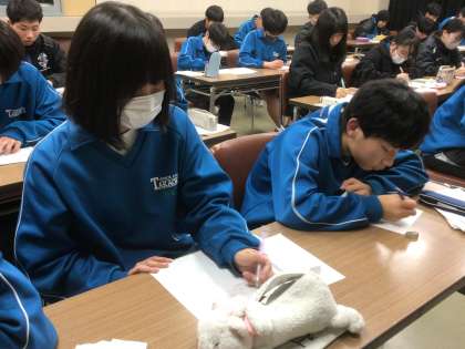 学年全員で行った立志式の後、クラスごとに分かれて活動です。