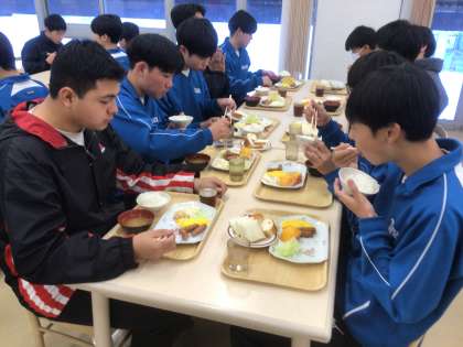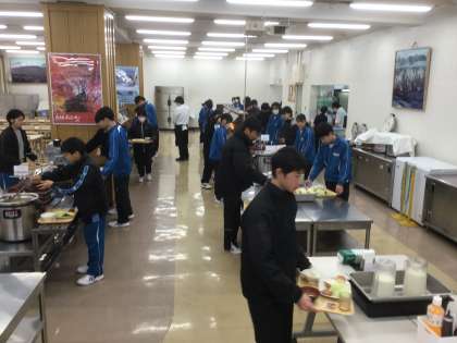 交流の家の食堂で食べる最後の食事・朝食の様子です。