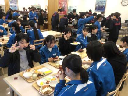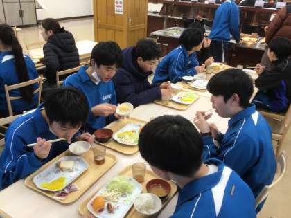 交流の家の食堂で食べる最後の食事・朝食の様子です。