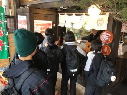 今回の自然教室での最後の活動・高山の古い町並みの散策の様子です。
