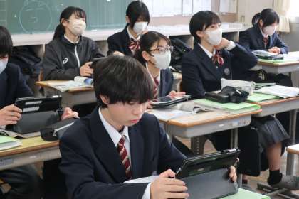 2年4組の社会・歴史分野の授業の様子です。