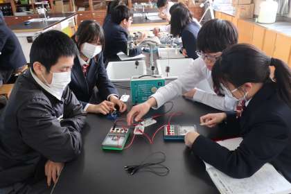「電圧と電流の関係」を調べる実験で学習していました。自然教室の代休が明けたばかりですが、しっかりと実験の段取りを把握して取り組んでいました。