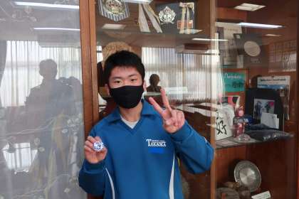 今回は、昨日行われた「学校周辺清掃活動(みどりの郷共催)」に参加した生徒に、学校オリジナル缶バッヂ(=「WE LOVE たかおか」バッジ)が配布されました。