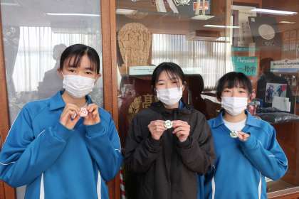 仲間の登下校や地域の方々が気持ちよく通行できるようにと活動してくれた生徒たち。缶バッヂを手にした今日も笑顔いっぱいの高中生です。