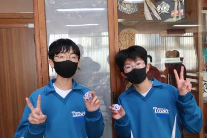 今回は、昨日行われた「学校周辺清掃活動(みどりの郷共催)」に参加した生徒に、学校オリジナル缶バッヂ(=「WE LOVE たかおか」バッジ)が配布されました。