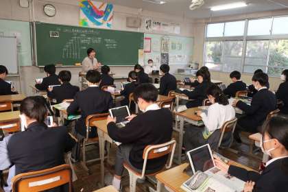 1年1組の社会・地理分野の授業の様子です。