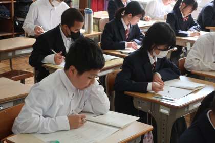 来週実施される初の学習診断テストに向けて、過去の問題に取り組んでいました。弱点を見つけ、しっかりと準備をして本番に臨んでほしいと思います。