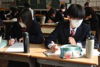 学習診断テストに向けて類似問題に取り組んでいました。冬休み中の学習の成果を確認しつつ、本番までの期間で克服すべき弱点を確認していきます。
