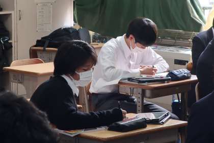 進めるべき単元の学習を終えたあと、目前に迫った私立高校・専修学校の一般入試に向け、質問タイムを含めた学習に切り替えられていました。