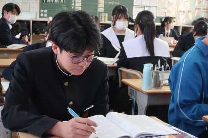 進めるべき単元の学習を終えたあと、目前に迫った私立高校・専修学校の一般入試に向け、質問タイムを含めた学習に切り替えられていました。