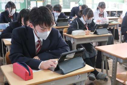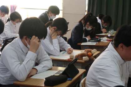 私立高校等の推薦入試で合格を手にしている生徒は、進学後の学習がスムーズにスタートできるように、また公立高校の受験が控えている生徒はその入試で最高の力が発揮できるように、それぞれが自身のこれからに向けて学習に取り組んでいました。
