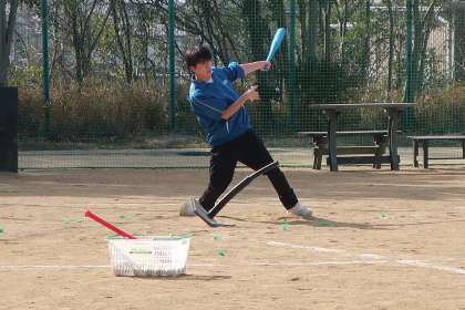「ティーボール」の学習です。チームで作戦を立てたり、声をかけ合ったりしながら、ゲームを楽しんでいました。仲間の活躍に歓声が上がる場面も多くありました。