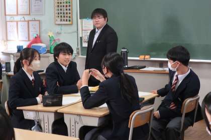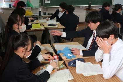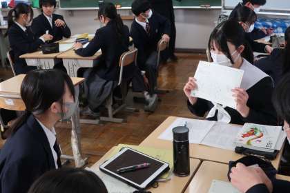 入試対策のプリントに取り組んでいました。正解にたどり着くためのそれぞれの解き方を共有し、入試本番に備えていました。