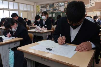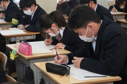 私立高校等の推薦入試で合格を手にしている生徒は、進学後の学習がスムーズにスタートできるように、また公立高校の受験が控えている生徒はその入試で最高の力が発揮できるように、それぞれが自身のこれからに向けて学習に取り組んでいました。