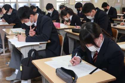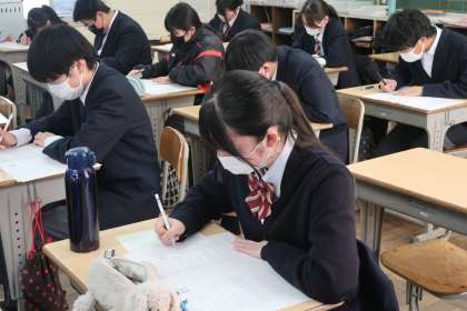 私立高校等の推薦入試で合格を手にしている生徒は、進学後の学習がスムーズにスタートできるように、また公立高校の受験が控えている生徒はその入試で最高の力が発揮できるように、それぞれが自身のこれからに向けて学習に取り組んでいました。
