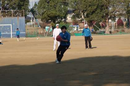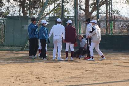 守備練習中心のメニューに取り組んでいました。ミスの少ないプレーをめざし、ミスした場合はトレーニングのメニューを増やすなど、緊張感がありながらも楽しく活動に向かっている姿が印象的でした。