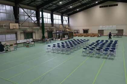 本日、本校で開催される『若林地区 防災フェスタ』のため、早朝から関係者の方々が準備を始めています。