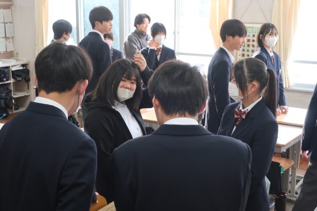 自然教室を終え、クラス内での絆も深まった2年生。また、明後日に控えた学習診断テストに向けて共に頑張っている仲間の日頃の様子も知っていることもあり、話に花が咲いていたようです。