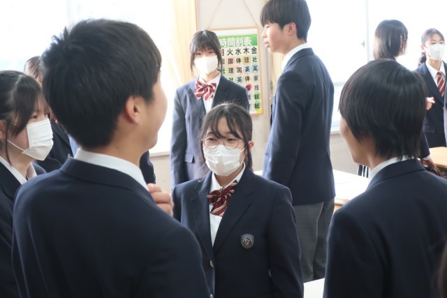 自然教室を終え、クラス内での絆も深まった2年生。また、明後日に控えた学習診断テストに向けて共に頑張っている仲間の日頃の様子も知っていることもあり、話に花が咲いていたようです。
