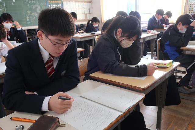 明日に迫った学習診断テストに向け、類似問題に取り組んでいました。本番で悔いが残らないよう、直前まで勉強を続けてほしいと思います。