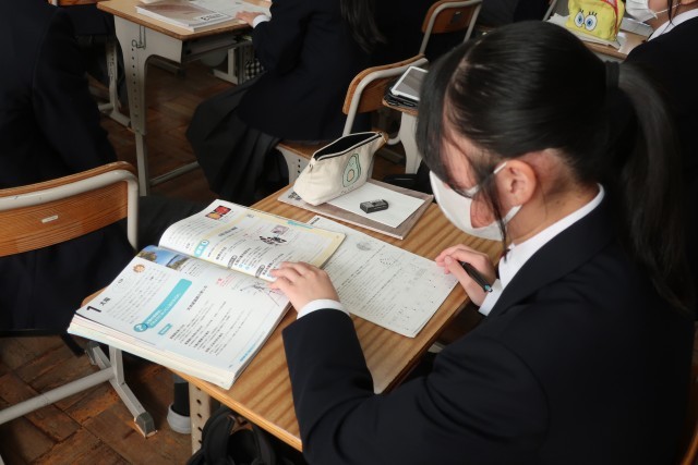 これまで学習した単元の総復習です。自力で解いたり、教科書やタブレットなどで確認したりと、学習の方法もさまざまです。