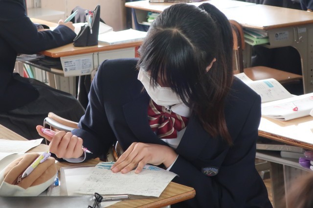 明日の学習診断テストに向け、単元ごとにまとめられたプリントを活用していました。弱点を確認し、家では最後の追い込みです。