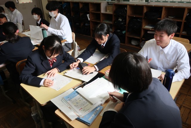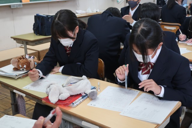 学習診断テスト本番を翌日に控え、類似問題で直前の対策です。初めてのテストに戸惑わないよう、丁寧に進められていました。