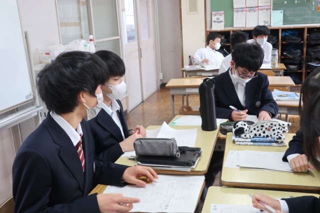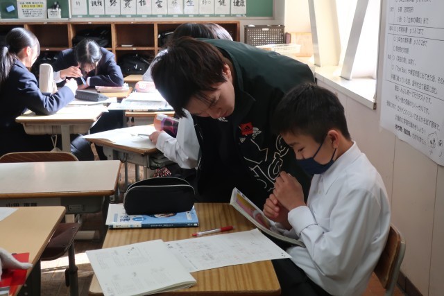 学習診断テスト本番を翌日に控え、類似問題で直前の対策です。初めてのテストに戸惑わないよう、丁寧に進められていました。