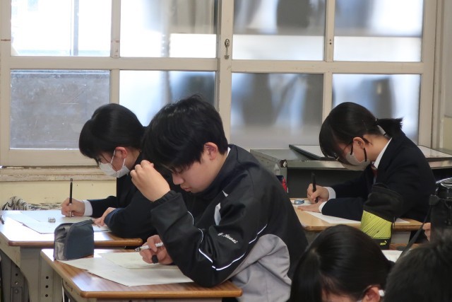 公立高校入試の予想問題に取り組んでいました。たくさんの問題を解き、いろいろなパターンに慣れていきます。当日慌てないよう、しっかりと取り組んでほしいと思います。