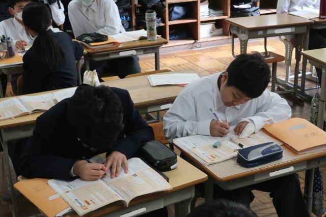 ことばのきまりの学習で、文節や品詞について確認し、演習問題を通して知識を確かめていました。