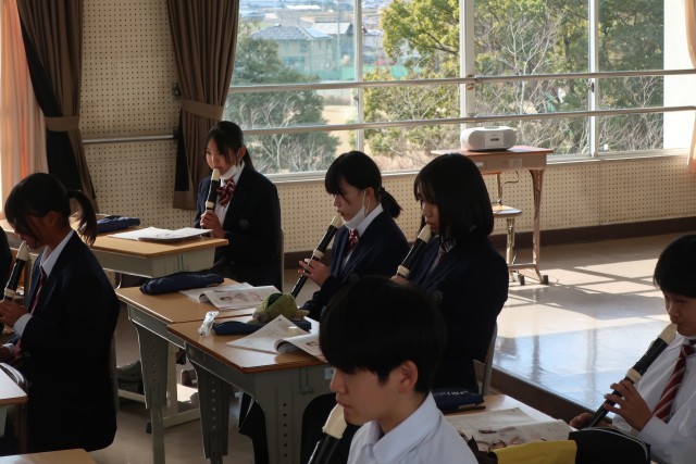 リコーダーの学習で、タンギングなど演奏の基礎を学んでいました。リズムを意識し、一生懸命活動に取り組んでいました。