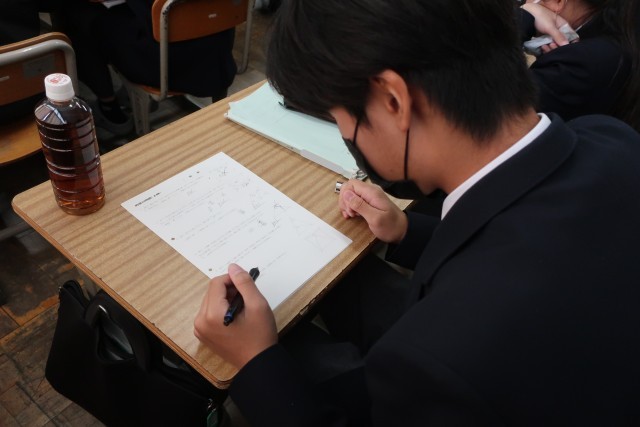 角度の上級問題に挑戦していました。学習診断テストを終えたばかりですが、10日後の定期テストに意識を切り替えて、学習に臨んでいました。