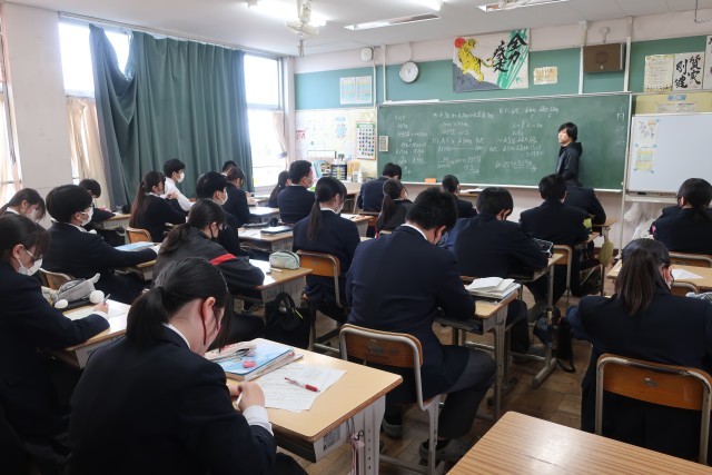 生徒たちが苦手意識をもつ分野の一つ「濃度」に関する問題を、全員が分かるまでとことん学習していました。