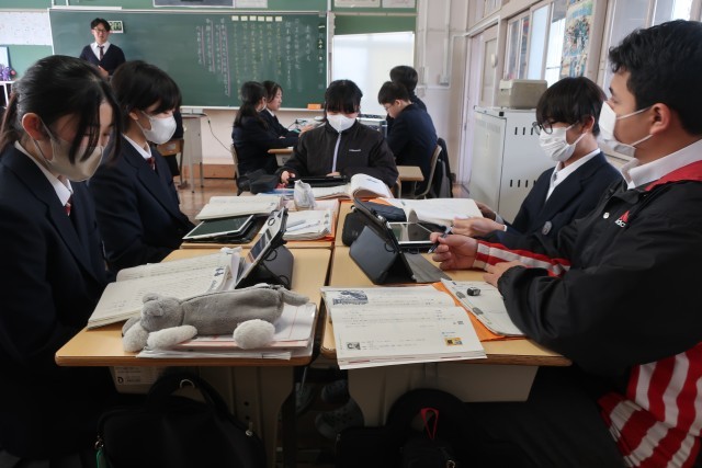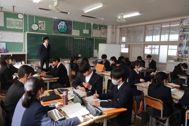「走れメロス」の学習で、「結末場面の王の心情の変化を読み取ろう」をテーマに、各自が考えをまとめていました。