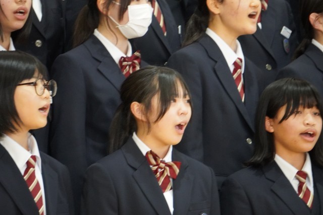 1年生が歓迎の合唱を披露し、成長した姿を小学校の先生たちに、先輩としてのプライドを6年生たちに感じてもらいました。