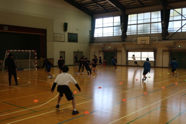 スタミナをつけるためのきつめのメニューに取り組んでいました。気持ちが途切れそうになると、指導者から声がかかります。それに必死に応えようと歯を食いしばる生徒たちの懸命な姿が印象的でした。