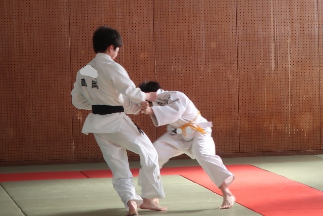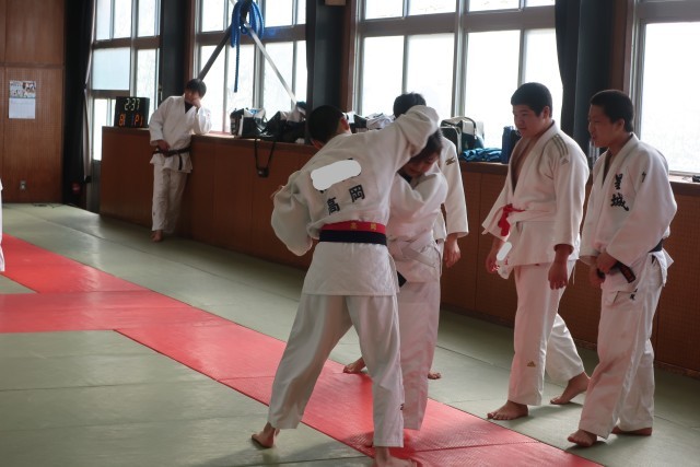 今回は本校卒業の高校生と現3年生も練習に参加し、後輩たちと一緒に稽古に励んでいました。いつもより稽古の相手が増え、またアドバイスもたくさんもらえるとあって、錬成館は熱気と活気に包まれていました。