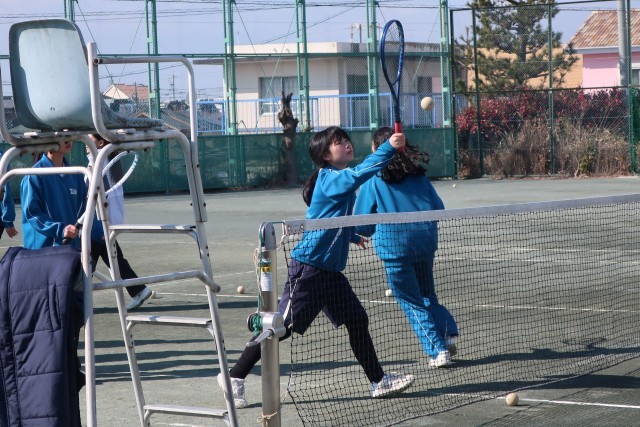 寒さを吹き飛ばす元気な雰囲気で、様々なメニューに取り組んでいました。お互いを励ます声がテニスコート中に響いていました。