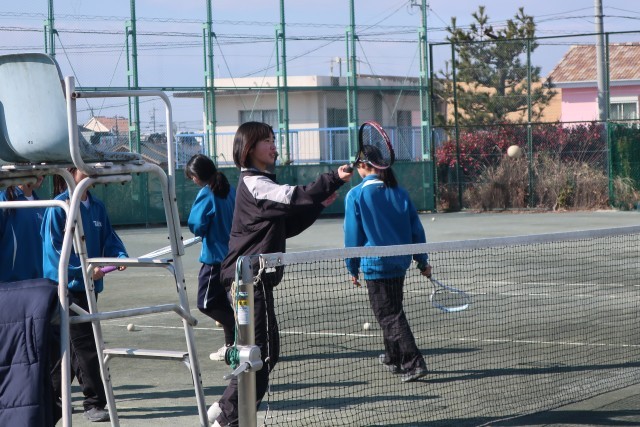 寒さを吹き飛ばす元気な雰囲気で、様々なメニューに取り組んでいました。お互いを励ます声がテニスコート中に響いていました。